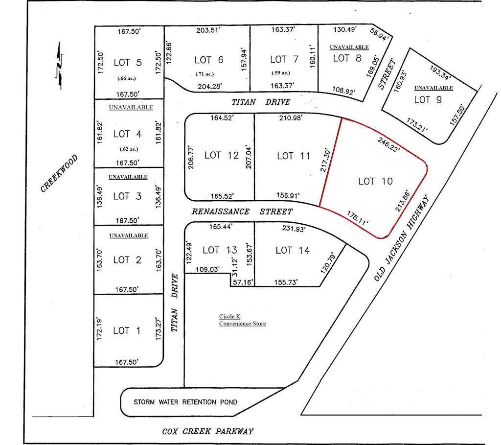 Lot 10, commercial lot located in commercial development just off of Cox Creek Parkway. Park sits close to the heart of the major shopping and restaurants area for Florence. Zoned B1. 24,000+ vehicles a day traffic count (2021 ALDOT).