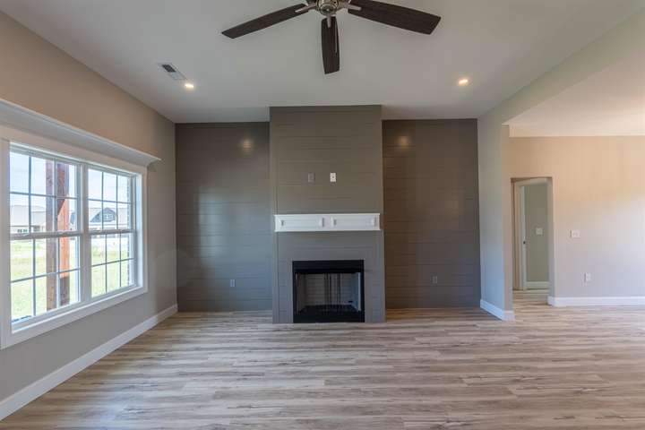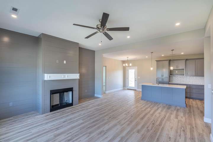 This brand new home in Delaney Trace offers three bedrooms, two baths, and a versatile flex room perfect as a home office, playroom, or formal dining space. You'll love the quartz countertops, custom cabinets, and luxury vinyl plank flooring throughout. The cozy gas fireplace adds warmth, while the tankless water heater and large utility room provide everyday convenience. This home blends style and function in a beautiful neighborhood. A must see!