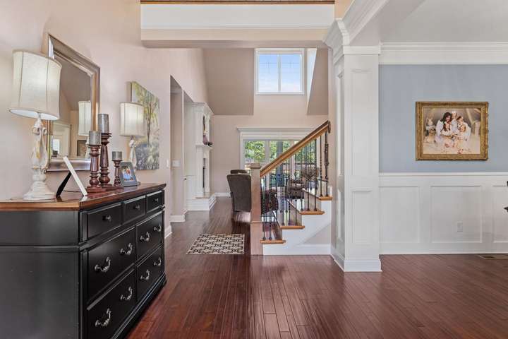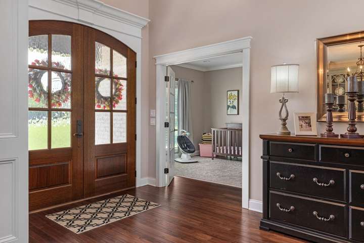 Step into a world of classic elegance and modern luxury in this 5-bedroom, 3.5-bath home spanning over 4,200 square feet on 1.3 acres. Grand soaring ceilings, detailed double crown molding, and warm natural light create a dramatic welcome as you enter. The heart of the home is a chef's kitchen outfitted with custom cabinetry, gleaming granite countertops, a grand island, and built-in shelving. The primary suite is a retreat of its own-luxuriously sized with spa-inspired amenities. Secondary bedrooms are equally spacious, with attention to comfort and flow. Use the main floor office as you work from home, or make it nursery/playroom. Step outside to your private backyard paradise featuring an inground, saltwater pool surrounded by open green space and plenty of room for play or hosting. This one checks every box-style, space, craftsmanship, and comfort. Buyer to verify all info.