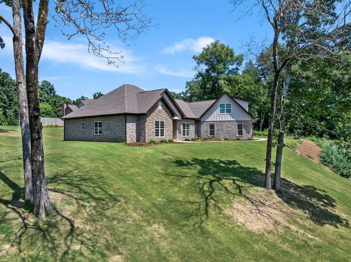 Welcome to this retreat nestled on 1.25 ac in a cul-de-sac, offering views and privacy! This thoughtfully designed home features 4 bedrooms and 2.5 baths on the main level, plus a versatile bonus room and full bath upstairs perfect for guests, playroom, or a private office. You'll love the high-end finishes throughout, including custom cabinetry, hardwood floors, and gorgeous marble surfaces in the kitchen and bathrooms. The chef’s kitchen is a dream with GE Café Series appliances, gas cooktop, double oven, farmhouse sink, floor-to-ceiling cabinetry, and an oversized island. There's a breakfast nook, walk-in pantry, and built-ins in the living room for extra functionality. The primary suite is a true sanctuary, with a spa-like bath featuring a freestanding tub, transom window, tile shower with glass surround and dual vanities. Other touches include a mudroom with custom bench, safe room, and 3 car garage. Out back, enjoy the covered porch with gas line for grilling - ideal in evenings!
