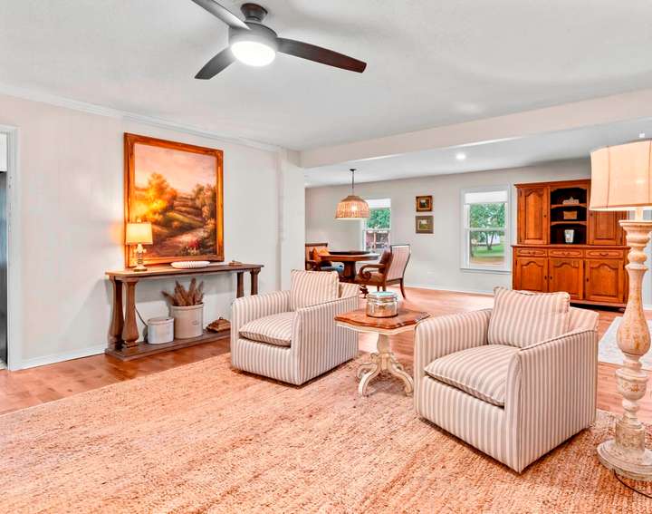 Welcome to this beautifully updated home offering 4 bedrooms and 3 full baths on a generous lot with a fully fenced backyard. Inside, you'll find updates, perfect for both everyday living and entertaining. The main level features kitchen with eat in area, comfortable living spaces, and well-appointed bedrooms. The basement is a standout, boasting a bedroom, full bath, large great room, safe room, and abundant storage space~ideal for guests, hobbies, or a private retreat. Step outside to enjoy the back patio with charming brick details and a driveway enhanced with brick accents, adding to the home's curb appeal. With updates throughout and a functional, flexible layout, this property is move-in ready, with granite, gas logs, LVP flooring, hardwood, tile, and newer windows. Also, 2 car attached garage!