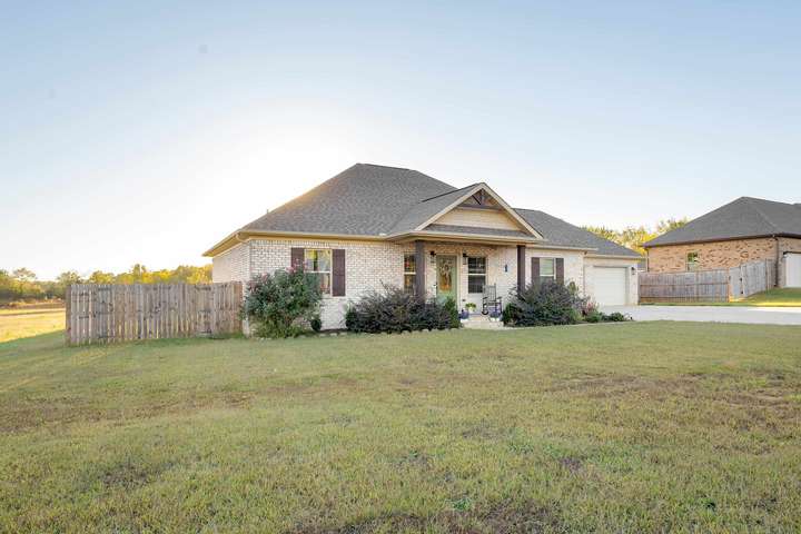 Beautiful one level brick home located just minutes from shopping and restaurants. You'll fall in love with this open concept home built in 2022. The home has a spacious living area that flows into the kitchen, which boasts a beautiful kitchen island. The custom fireplace sets the tone for a relaxing evening at home. A privacy fence gives a great place for the kids to play or space for the family pets. This 3 bedroom, 2 full bath home sits on a .47 acre lot. A great place for entertaining. Seller will provide a 1-year home warranty.