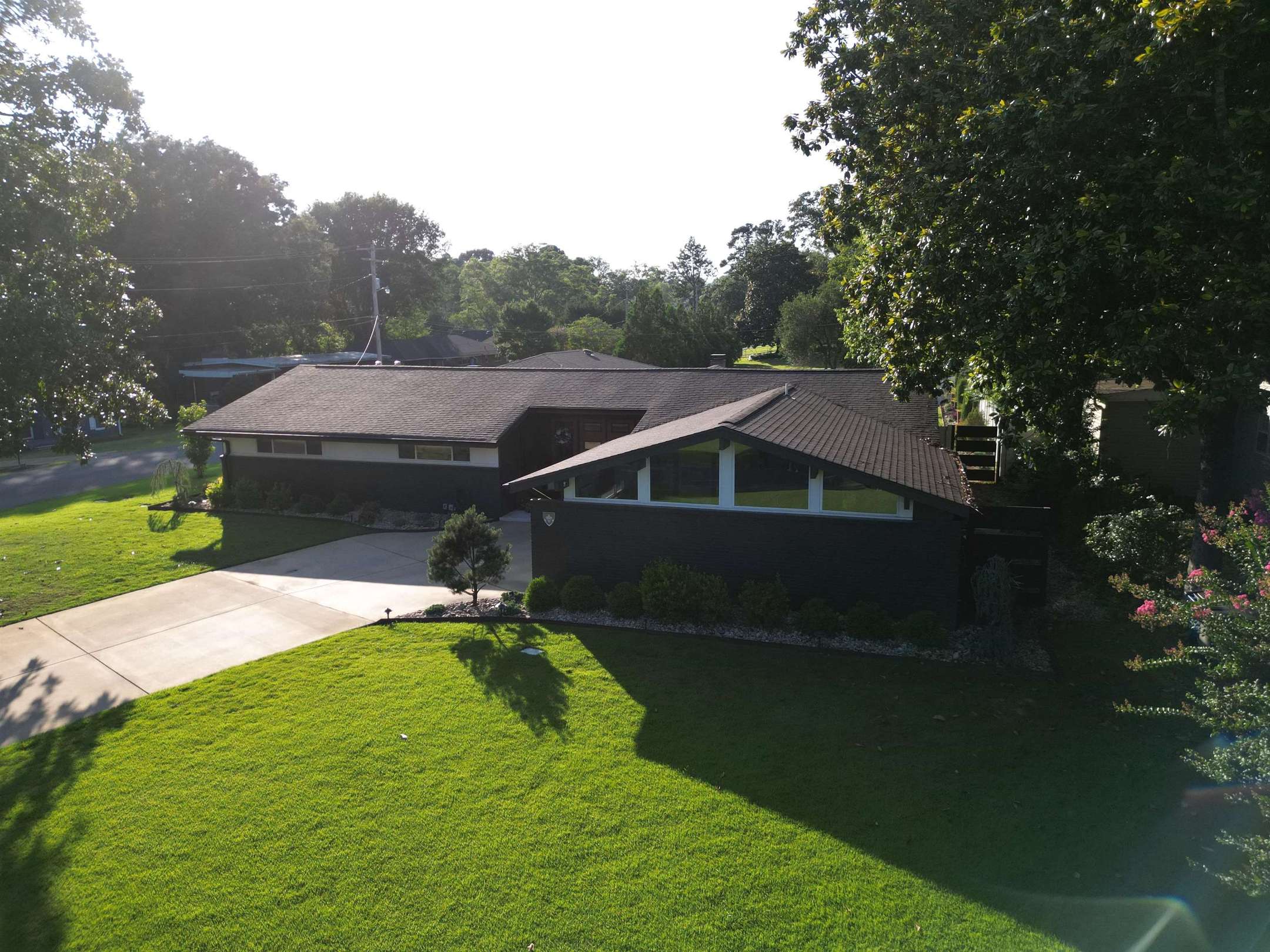 STUNNING MID-CENTURY MODERN OASIS IN FLORENCE, AL. Welcome to your dream home at 427 Riverview Circle. 2980 sq ft masterpiece designed by Don Scholz in the iconic MK58 design collection perfectly marries classic charm with modern luxury. Gleaming, seamless porcelain floors throughout. Monogram appliances include a double refrigerator/freezer, wine cooler, and separate ice maker. Solid wood cherry cabinets and interior doors. 4 bedrooms & 3 baths. LED lights throughout. Electric fireplace in the living room and main bedroom. 3 car garage, outside gas rock fireplace & a covered patio just outside. A 12x24 saltwater swimming pool and a jacuzzi for fun and relaxing in the backyard. Mature, well-manicured flower beds and trees are included in the backyard, enclosed with a privacy fence.