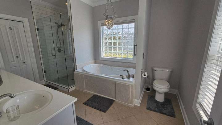 Spacious family home! Step into beautifully designed family floor plan featuring generous living spaces and gorgeous details throughout the home! Primary master suite on main level with his and her bath areas, dual walk-in closets, and plenty of space to unwind and/or have private reading nook or office space. Kitchen is fully updated with an expansive island perfect for gatherings, and a cozy fireplace that opens into a large den/family area with an open sunroom and/or additional sitting area around the corner of it. Upstairs you'll find 5 generous sized bedrooms, each with large walk in closets and one room that could easily double as a bonus or movie room! This home is a must see for families looking for comfort, versatility, location, and space to grow!