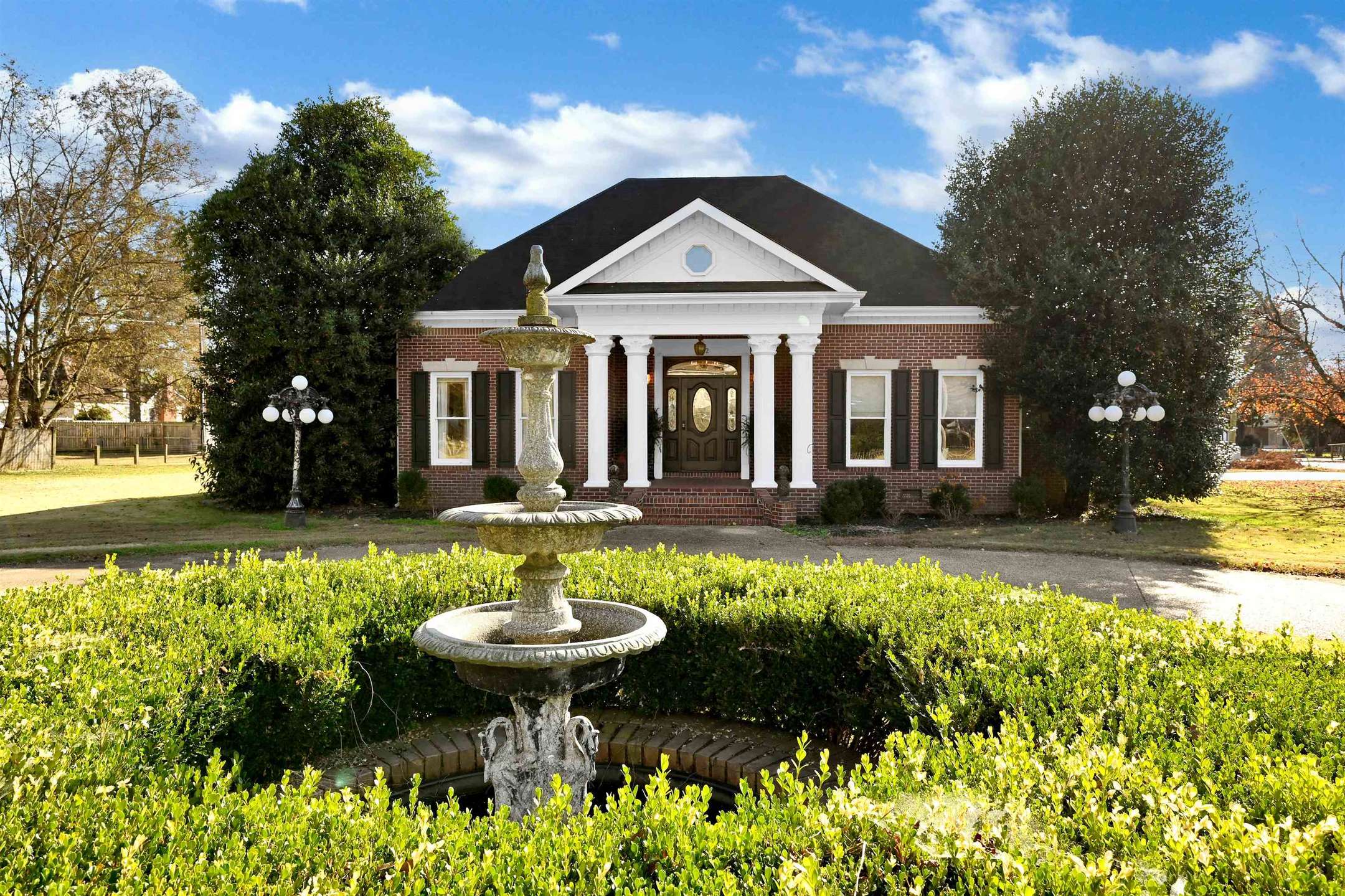Southern charm at its best! You'll feel the elegance this full brick home offers when you step into the oversized front foyer w/columns open to the spacious living room w/gas log fireplace,10ft ceilings, double french doors leading to a covered porch and courtyard-perfect for relaxing/entertaining. Chef's dream kitchen features island, granite countertop, double ovens, abundance of cabinets, large walk-in pantry. Spacious primary suite w/tray ceilings, his & her closets. Primary bath w/jetted tub, double sinks, shower, tiled flooring. Spacious Bedrooms 2 & 3 feature jack-n-jill bath, double closets. Large laundry room w/ample cabinets, Upstairs game room, circle paved drive, corner lot, sprinkler system, alarm installed, oversized two-car garage. Come and see, you will fall in love!