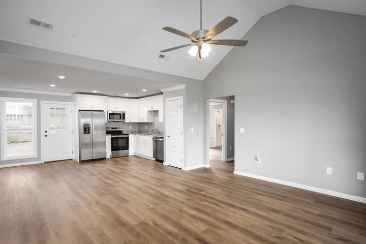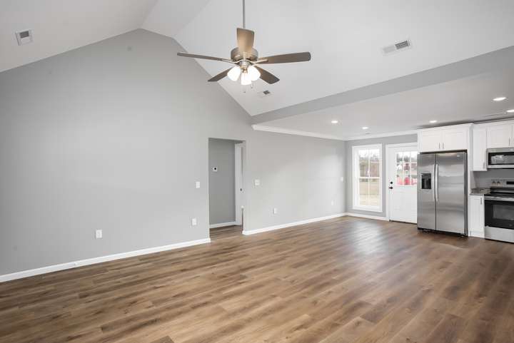 Imagine pulling up to YOUR brand-new 1,400 sq ft, 3-bed, 2-bath beauty in Tuscumbia, AL fresh, flawless, and screaming “welcome home!” Picture a huge open backyard ready for kids, dogs, trampolines, fire-pit nights, or just soaking up that sweet Alabama sunshine on your spacious patio. The sprinkler system takes care of all lawn maintenance so you don't ever have to water! Step inside and get hit with the wow factor: soaring ceilings, sunshine everywhere, tough-yet-gorgeous luxury vinyl plank floors, and energy-efficient magic that keeps bills tiny. The kitchen is straight up dreamy sparkling stainless steel appliances, shaker cabinets, a giant quartz island perfect for breakfast chaos or cocktail parties, and counter space that never ends. Retreat to your primary suite with its massive walk-in closet and spa bath double vanities + a tiled shower so stunning you’ll linger. Two more bright bedrooms and a sleek second bath mean room for everyone, or the home office. Must see!