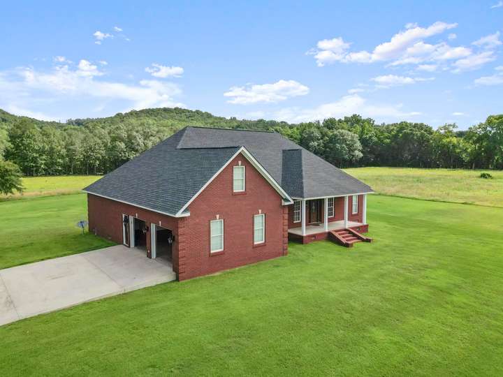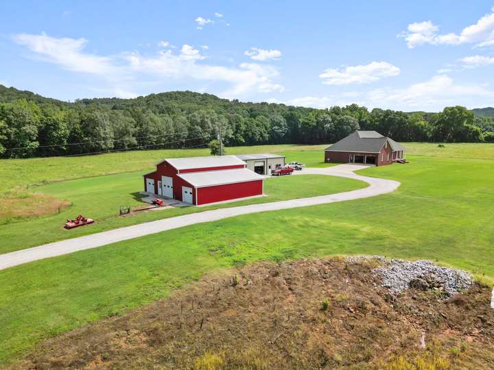 This stunning 3,500 sq ft heated and cooled home is nestled on 38 picturesque acres with gated access, offering a perfect blend of luxury and functionality. The home boasts 5,400 sq ft under roof, featuring 3 spacious bedrooms and 2.5 bathrooms on the main floor. The second floor offers 1,100 sq ft with a full bathroom and has been thoughtfully designed to accommodate 2–3 additional bedrooms with a shared bath, if desired. Additional amenities include a 3,500 sq ft insulated shop complete with a kitchen and full bathroom, as well as a 2,000 sq ft insulated barn ideal for equipment storage or agricultural use. The home has many upgrades: Pot filler in the kitchen, tray ceilings in all bedrooms, tray lights in the master, large master bath with separate tub and shower, most lights in entire house are on dimmer switches. Custom wood kitchen cabinets, archway in the living and more!