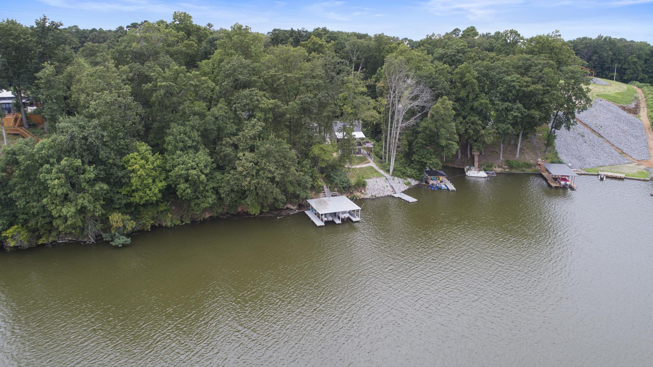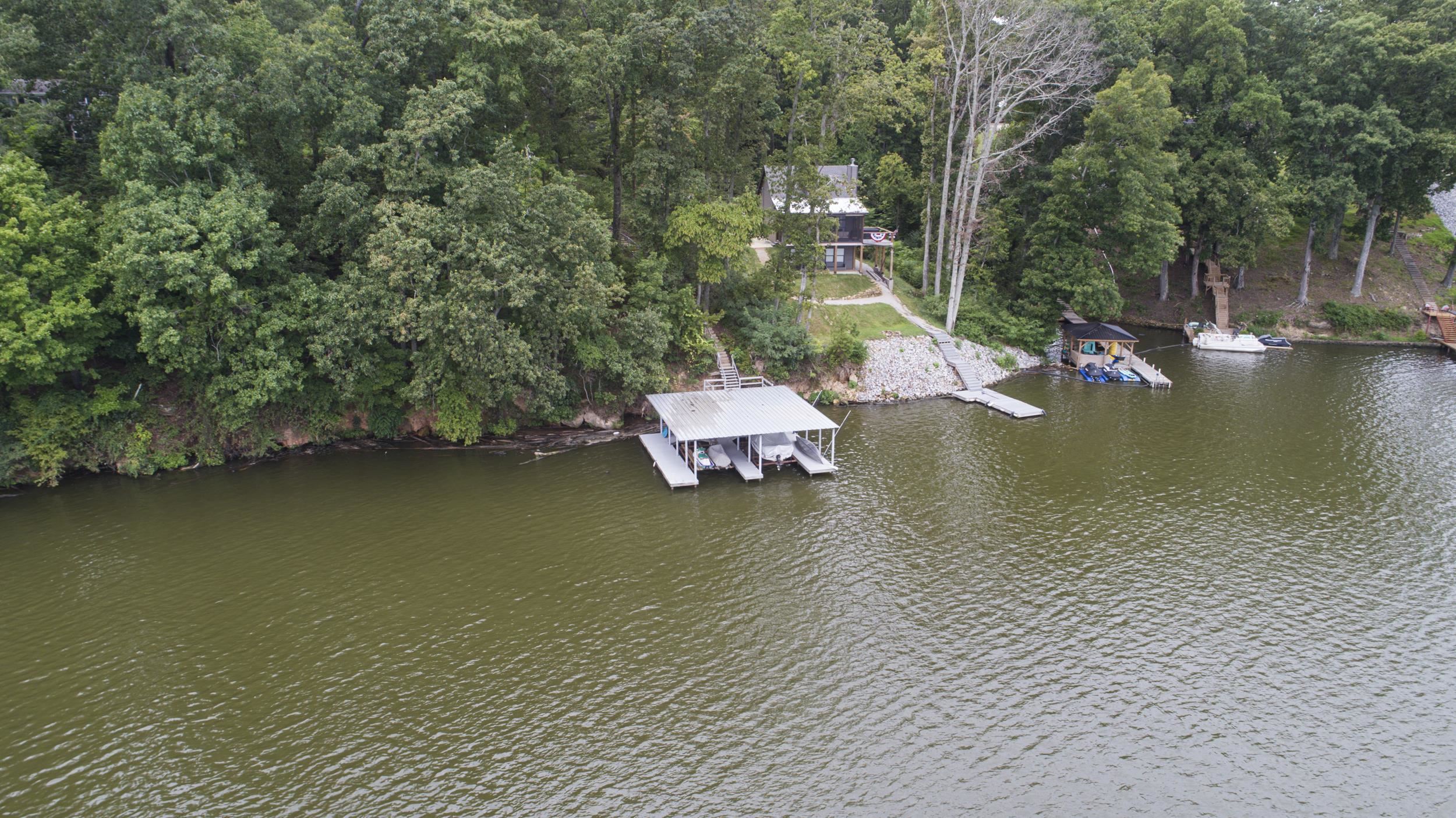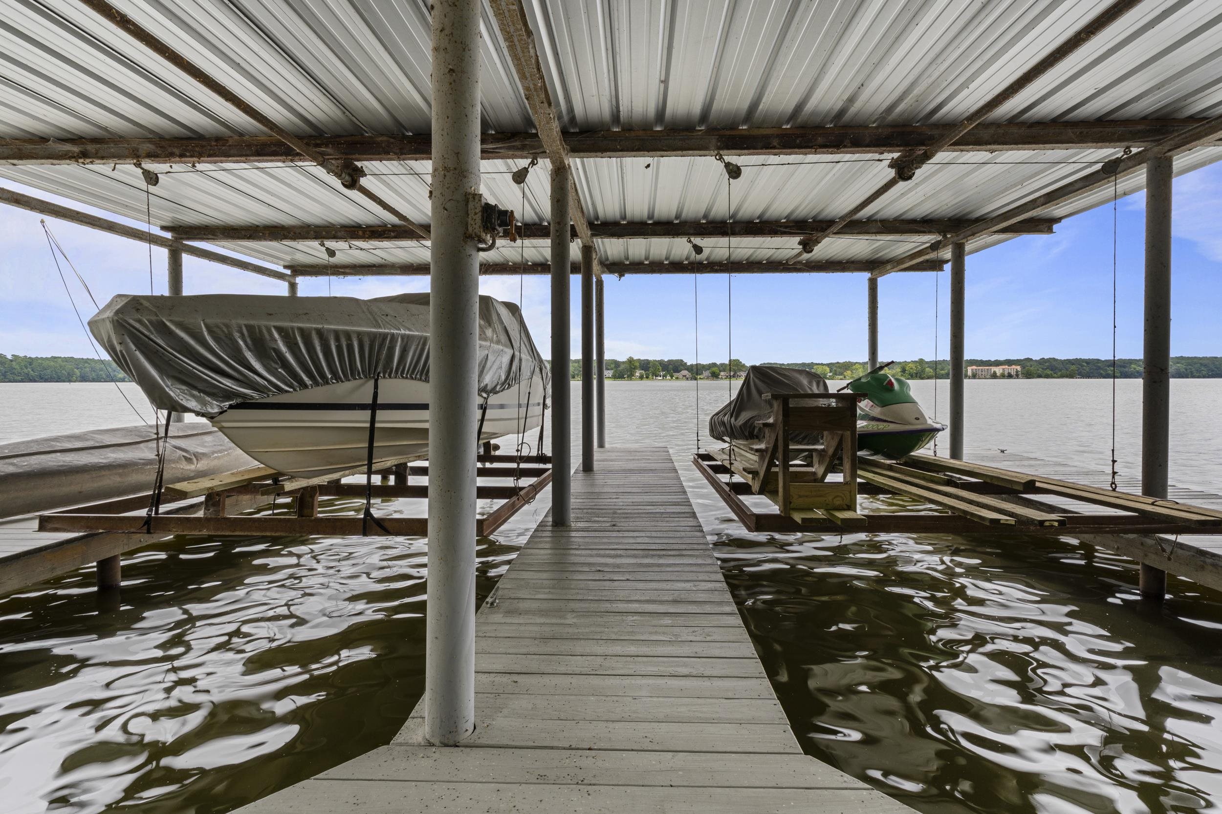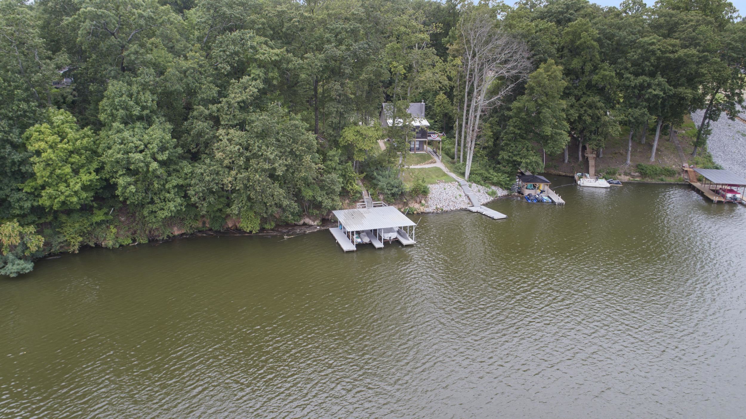 Magnificent deep-water riverfront retreat with stunning panoramic views. This inviting home features a spacious great room open to the kitchen, perfect for gathering after a day on the water. A wrap-around porch and expansive deck—ideal for a hot tub—allow you to enjoy the scenery from every angle. Outdoor living shines with a screened-in porch and generous entertaining spaces. The impressive boathouse includes two boat lifts, a tanning deck, and plenty of room for lakeside fun. Whether relaxing or entertaining, this is river living at its finest.