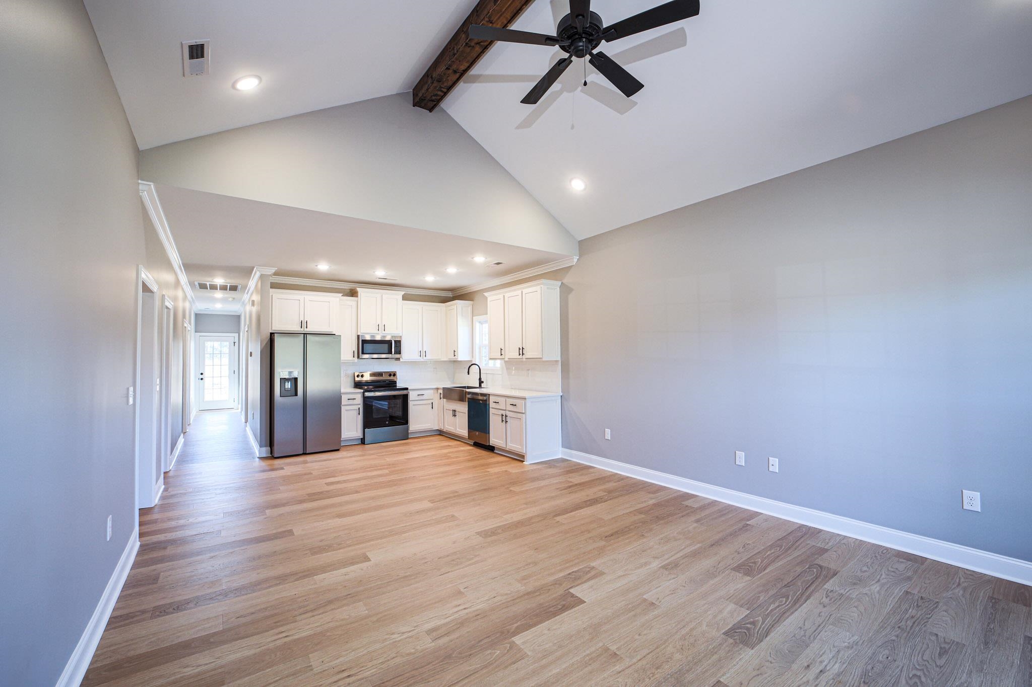 Welcome to this stunning 3bed/2bath new construction home located within the Muscle Shoals city limits. With its fresh design & high-quality finishes, this home is perfect for those seeking modern comfort & style.The home features neutral tones throughout. The spacious living room is enhanced by a vaulted ceiling with a charming wooden beam, creating an inviting & open atmosphere. In the kitchen, you'll find sleek quartz countertops, stainless steel appliance package, subway tile backsplash, & a pantry. Kitchen island coming 3/19/2026. The primary suite offers a trey ceiling, private bath w/double sinks, quartz countertops, walk-in closet, & a beautifully tiled tub surround.Other highlights include a covered back porch, an attached garage, & a separate laundry room. This thoughtfully designed home is perfect for both relaxing & entertaining. Don’t miss your chance to see this beautiful home. Please note Square footage & all other information to be verified by the purchaser.